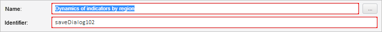 To execute the example, the HTML page must contain the MetabaseSaveDialog component named saveDialog (see Example of Creating the MetabaseSaveDialog Component). Set red fill color for the blocks that contain entry boxes for the identifier and name of the object to save: