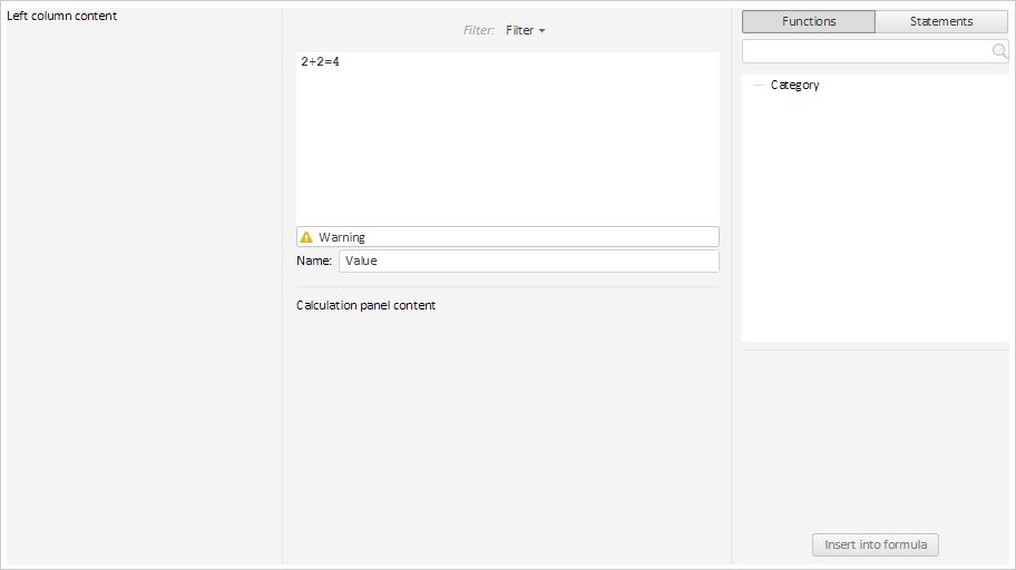 As a result the Name container with text and the Warning button are added to the formula editor: