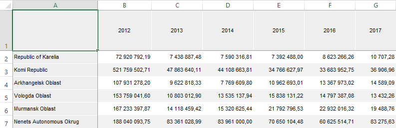Example of table: