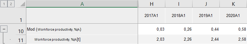 After the function is applied, a series with the name of the Mod(<Series_Name>) type and containing calculation results is added to the data table for each of the selected series. For example:
