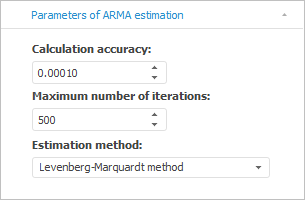 Estimation Method. Select the ARMA coefficient estimation method in the drop-down list.