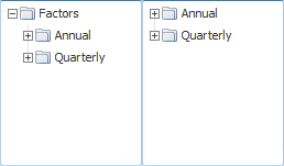 The MetaAttributesTreeList component example with displayed elements tree node (to the left) and without (to the right):