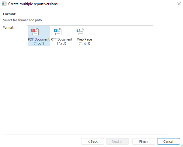 Batch Export button in the Batch Operations group on the Foresight ribbon tab. The Creating Multiple Report Versions dialog box opens: