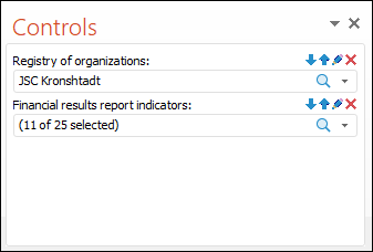 On adding report for repository with set up controls to the document, they will be displayed to the Controls panel.