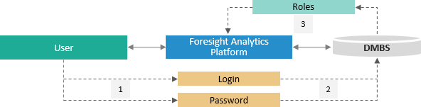 User credentials can be checked at DBMS server and/or in Foresight Analytics Platform.
