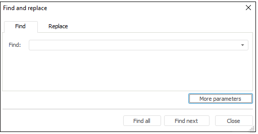 2. If necessary, specify advanced search options. To do this, click the More Parameters button. Additional search settings appear on the Find tab: