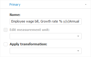To set up basic parameters of the time series selected in the data table, use the Primary side panel tab.