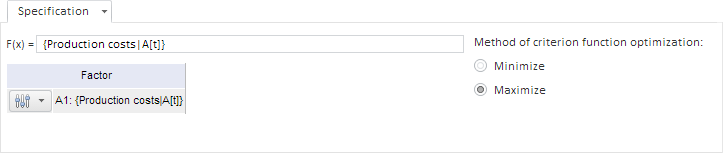 To form a criterion function expression, use the F(x) box. Expression can contain arithmetic characters, round brackets and factors.
