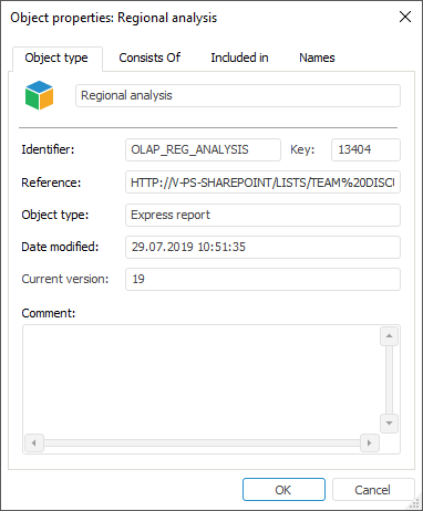 The link to the publication appears in the Object Properties dialog box on the Object Type tab: