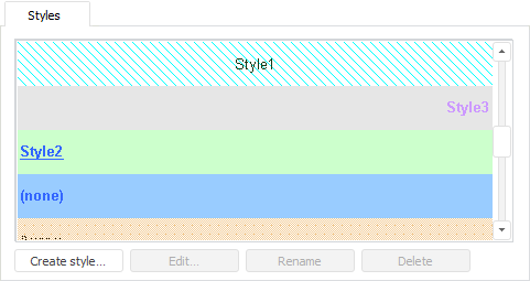Delete. Deletes selected style from the list. This command is not available for external styles.