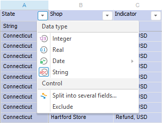 To transform data that was obtained from data source and will be further imported to the consumer, go to the data correction page of the data import wizard: