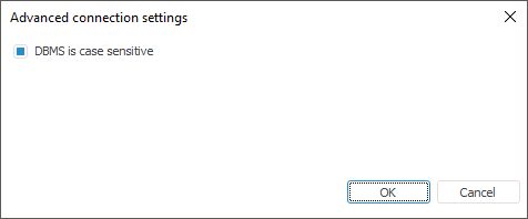 DBMS is Case Sensitive. Selecting the checkbox enables the user to work with DBMS objects with different capitalization in their physical name.