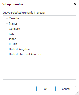 NOTE. Adding and removing of MDM dictionary elements included into group of elements, and also using of groups of elements in various operations do not depend on whether default hierarchy is selected. Groups of elements of MDM dictionaries work only with main dictionary elements. It is unavailable to create a group go elements on default alternative hierarchies.