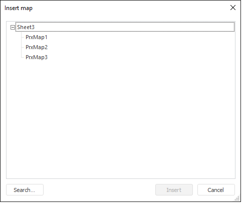 Insert Map button in the Insert group on the Text Sheet.Format ribbon tab. A dialog box with the list of objects shown in report standard sheets opens: