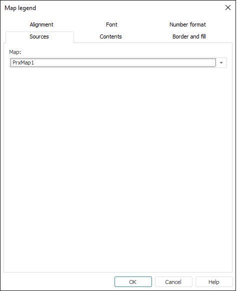 To set up map legend source, go to the Sources tab in the Map Legend dialog box: