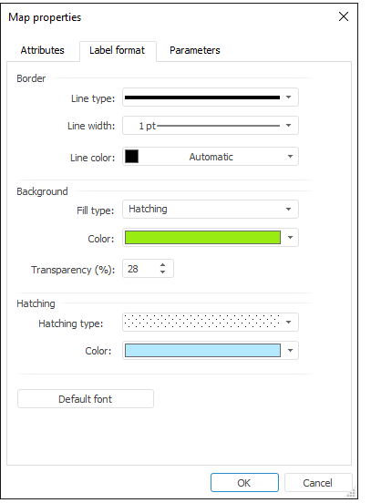 To set up formatting of map territories labels, go to the Label Format tab of the Map Properties dialog box.