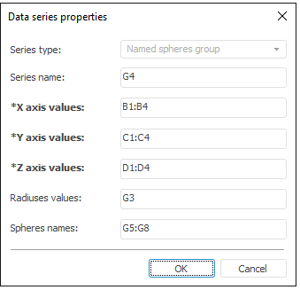 For series of all types, the fields containing the axis values are required. All the settings are entered as ranges.