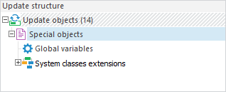 After special objects are added, the Update Structure area shows a folder containing special objects: