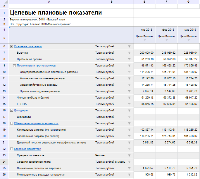 Целевые плановые показатели на уровне Холдинга: |
