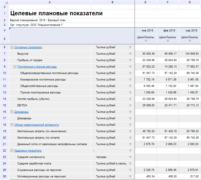 Целевые плановые показатели на уровне юридического лица: |
