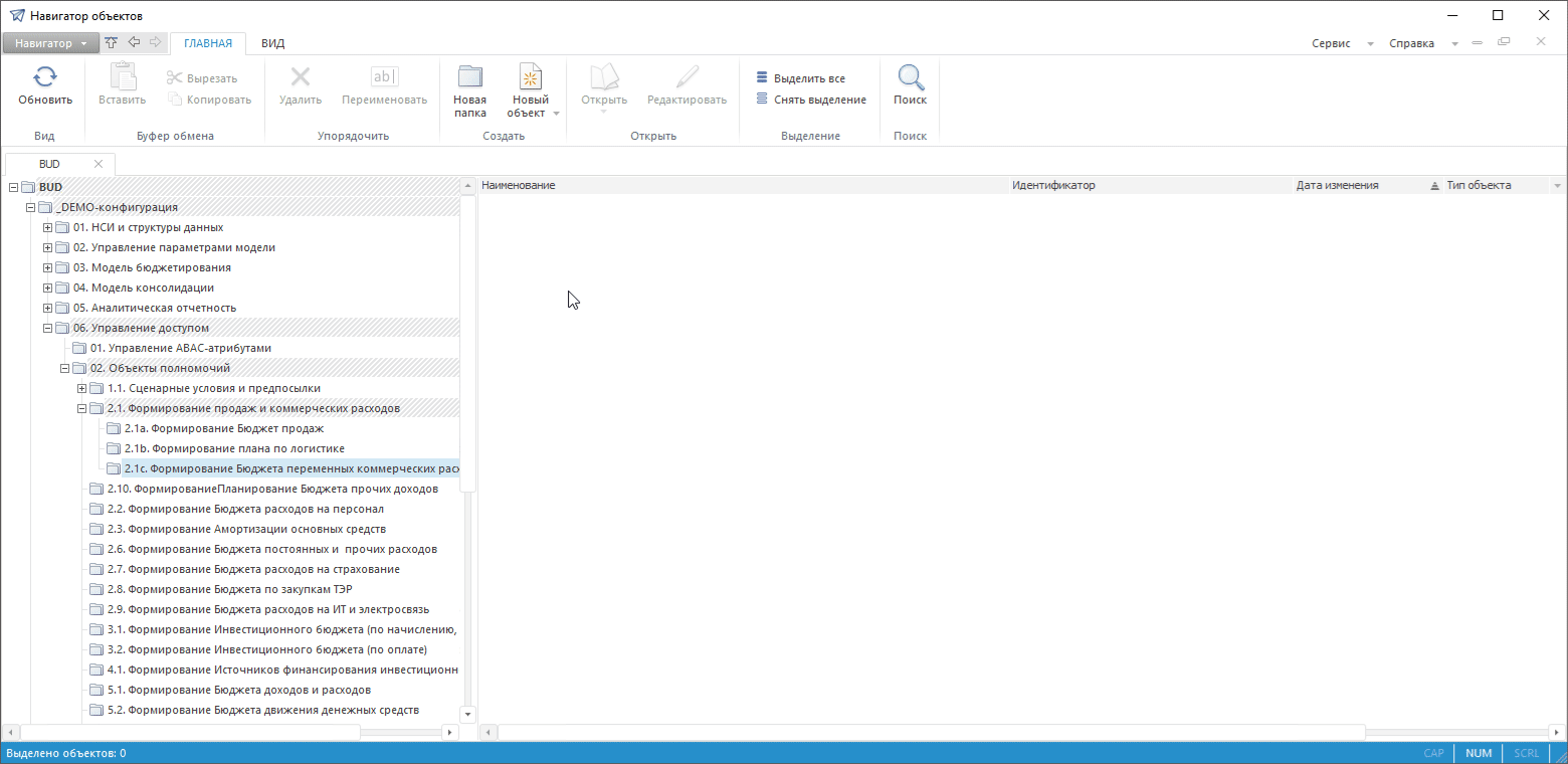 Для начала работы по построению бюджетного процесса создайте объекты полномочий для настройки прав доступа пользователей к сегментам данных: