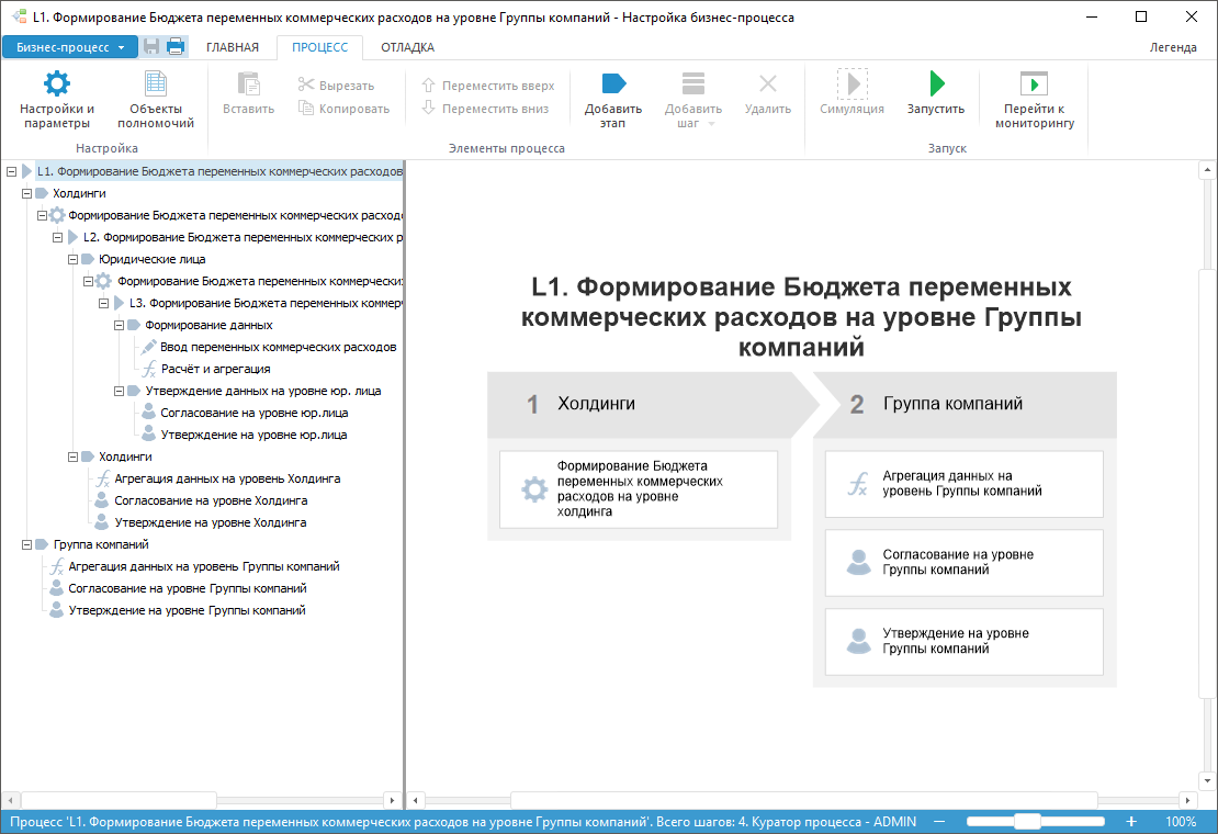 Бизнес-процессы. Служат для построения многоуровневой бюджетной модели, включающей этапы и шаги формирования, аллокации, агрегации, согласования и утверждения бюджетных показателей.