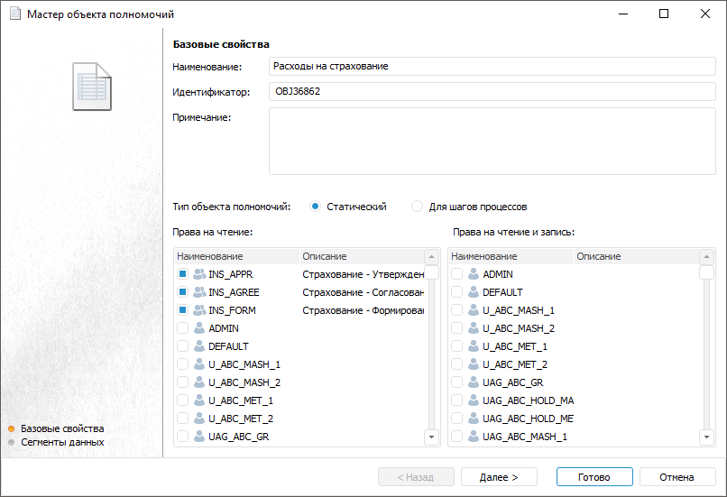 Ролевая модель. Служит для разграничения доступа пользователей продукта к объектам и процессам бюджетной модели.