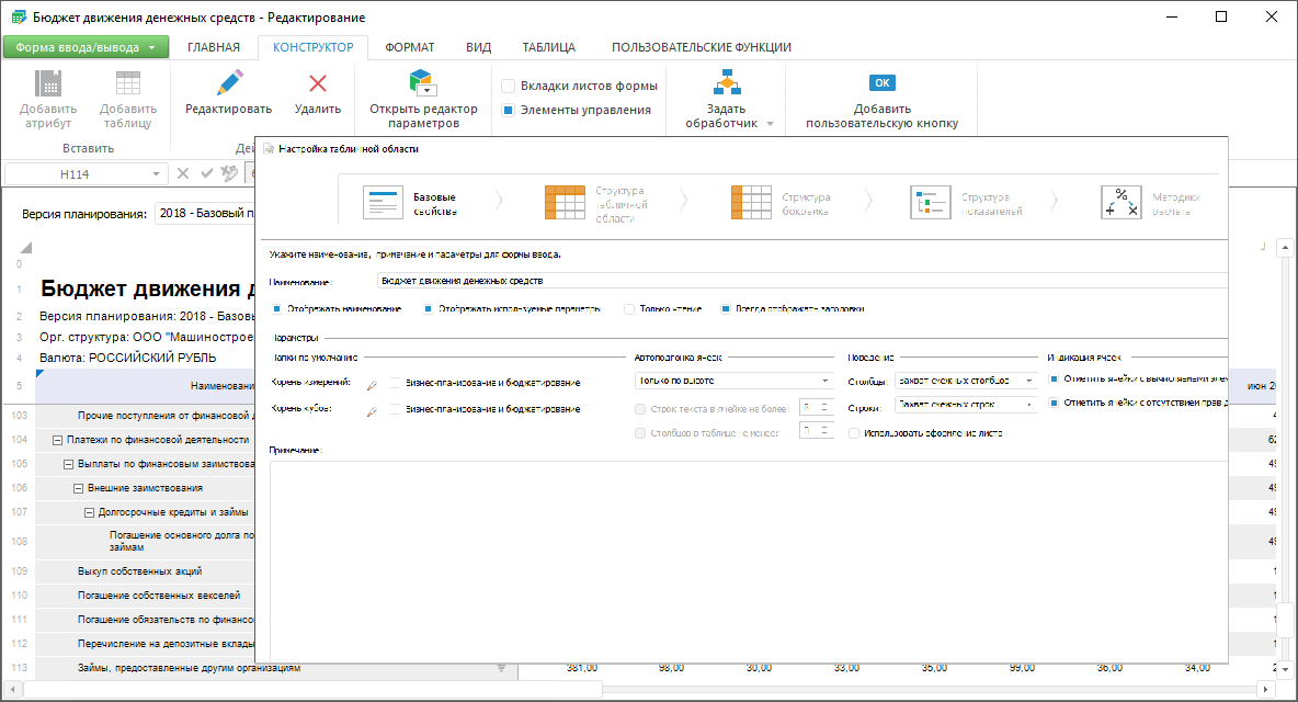 Настройте бюджетные формы для ввода и отображения данных показателей бюджетной модели.