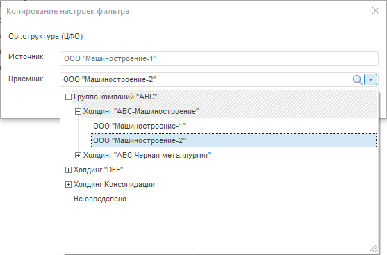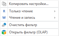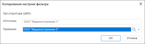 Для упрощения работы с составом фильтра доступна операция копирования текущих настроек фильтра для другого значения основного параметра.
