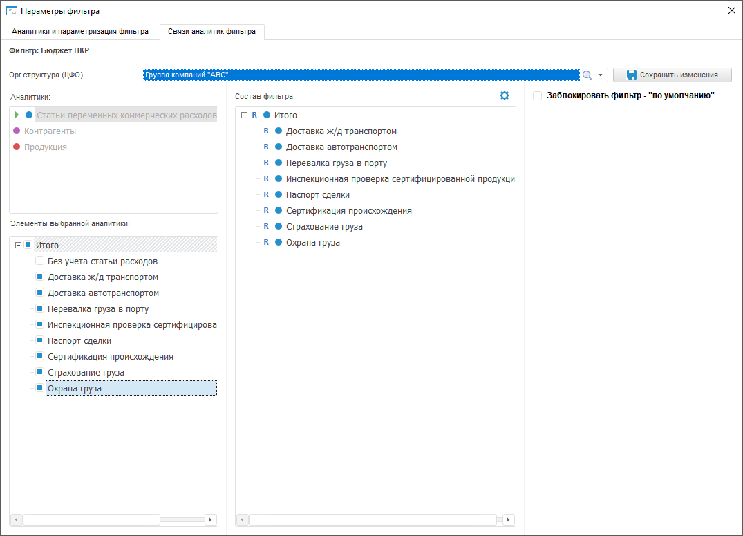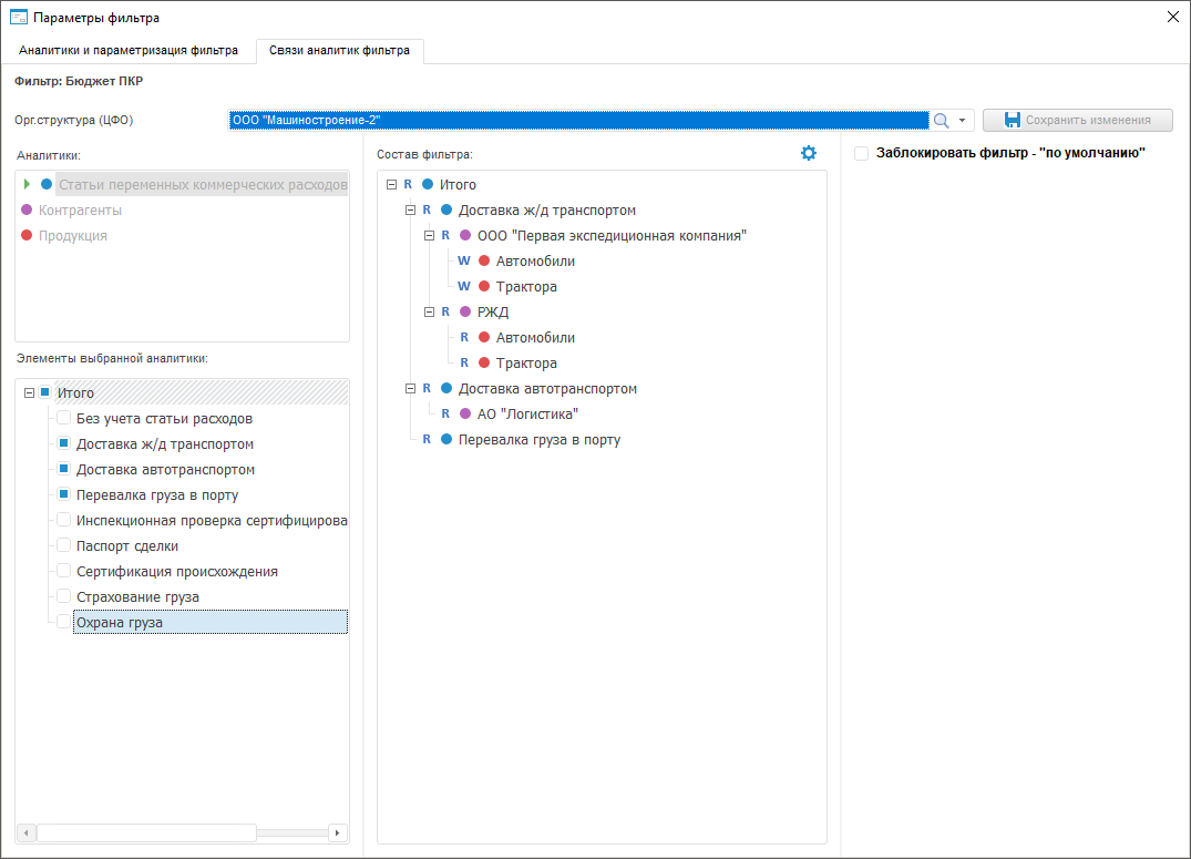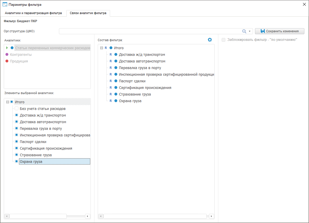 Настройка связей аналитик фильтра | Настройка режима доступа к элементам фильтра