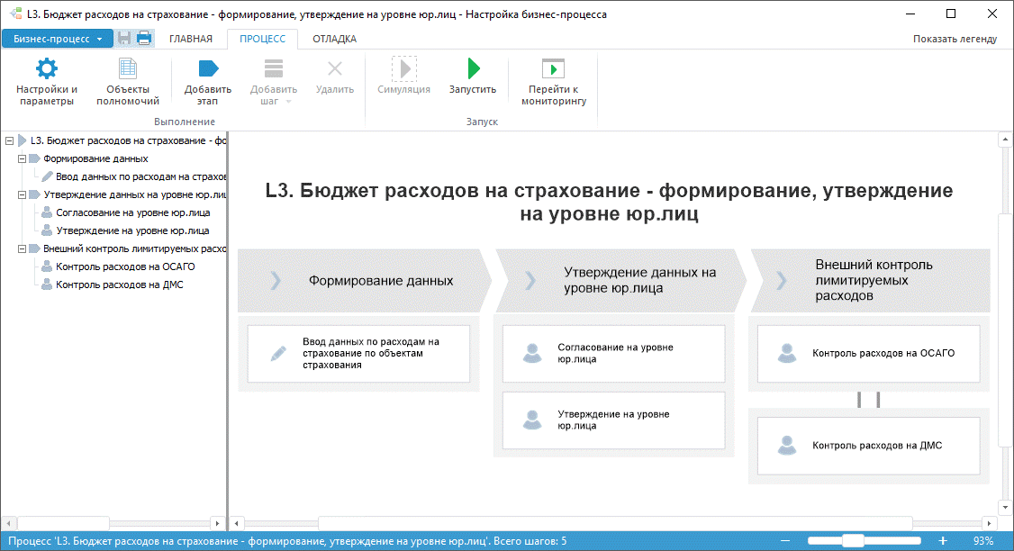 Определим динамические права на запись на примере бизнес-процесса «Формирование бюджета расходов на страхование на уровне юридического лица».