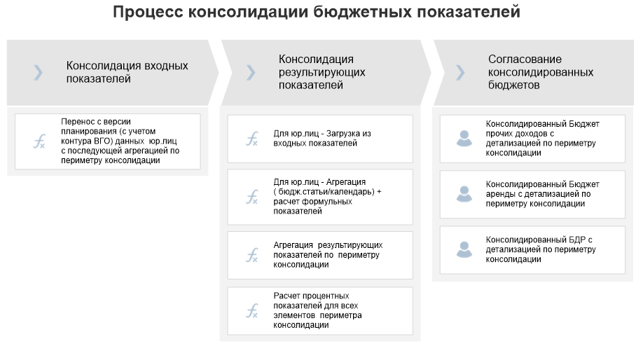 В рамках преднастроенной конфигурации настроен упрощенный процесс, в который включена консолидация данных по бюджетным формам: