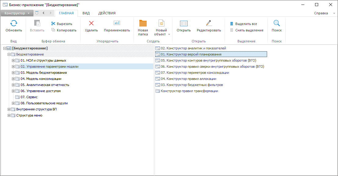 В рамках бюджетной модели данные могут быть сформированы для произвольного количества версий планирования. Далее, консолидированные данные формируются на основе данных бюджетной модели, взятых по одной из версии планирования, путем выделения и последующей элиминации внутригрупповых оборотов. При этом для выделения внутригрупповых оборотов могут выбираться различные контуры ВГО. После выделения внутригрупповых оборотов должна быть выполнена их сверка с заданием требуемого порога существенности. После сверки внутригрупповых оборотов выполняется консолидация данных, путем агрегации «снизу-вверх» по выбранному периметру консолидации. Также перед консолидацией данных нужно определить набор бюджетных показателей, к которым она будет применяться.