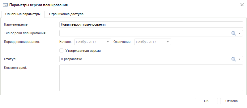 Для сохранения введенных значений параметров версии планирования нажмите кнопку «OK».