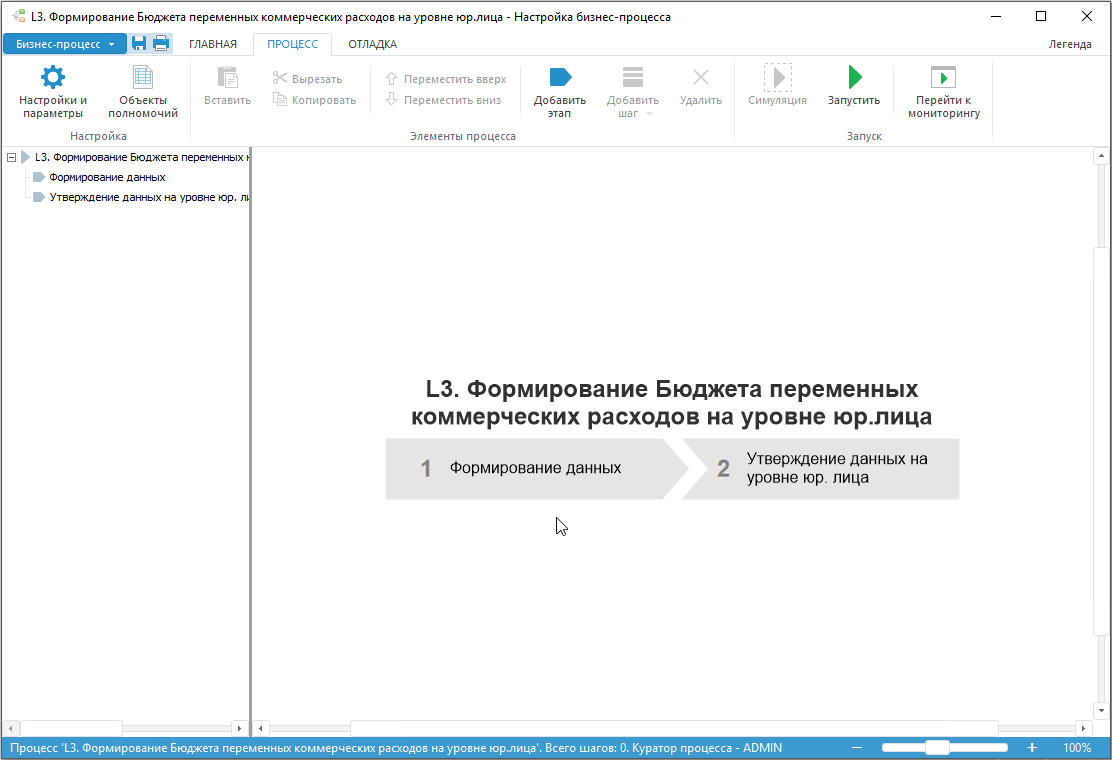 Добавьте этапы процесса «Формирование данных» и «Утверждение данных на уровне юр.лица»: