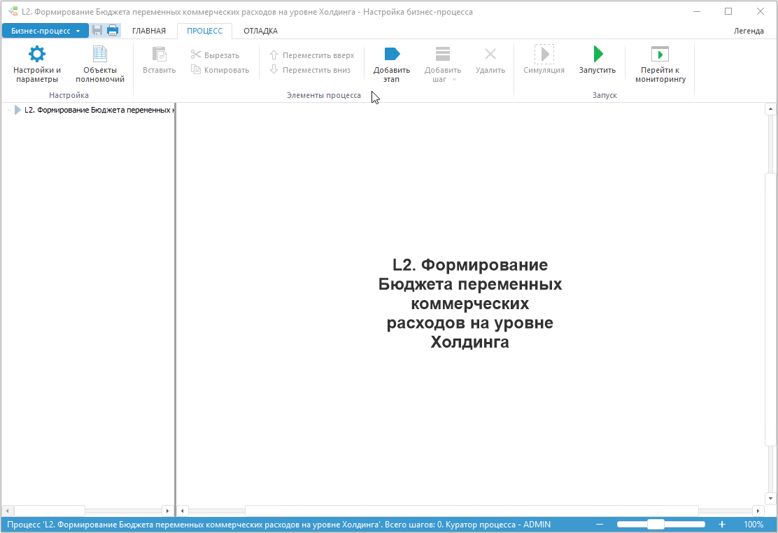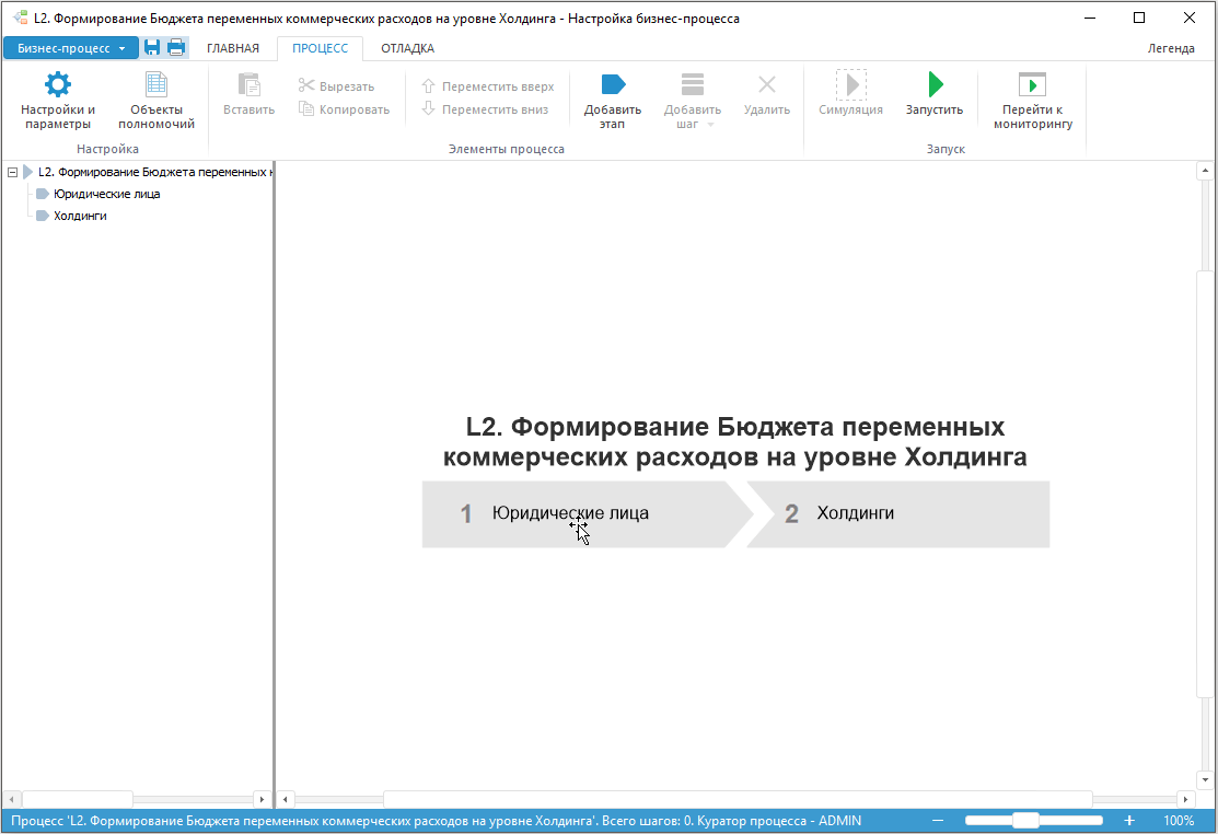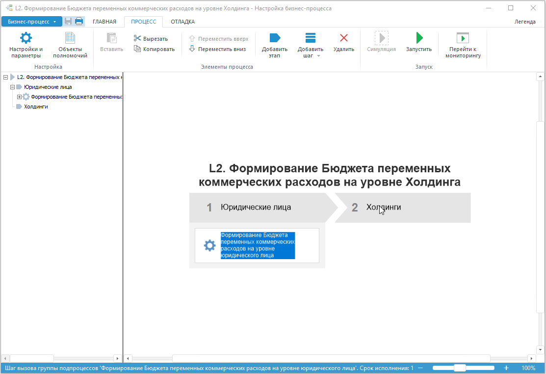 По аналогии с процессом на уровне холдинга создайте и настройте процесс для группы компаний: