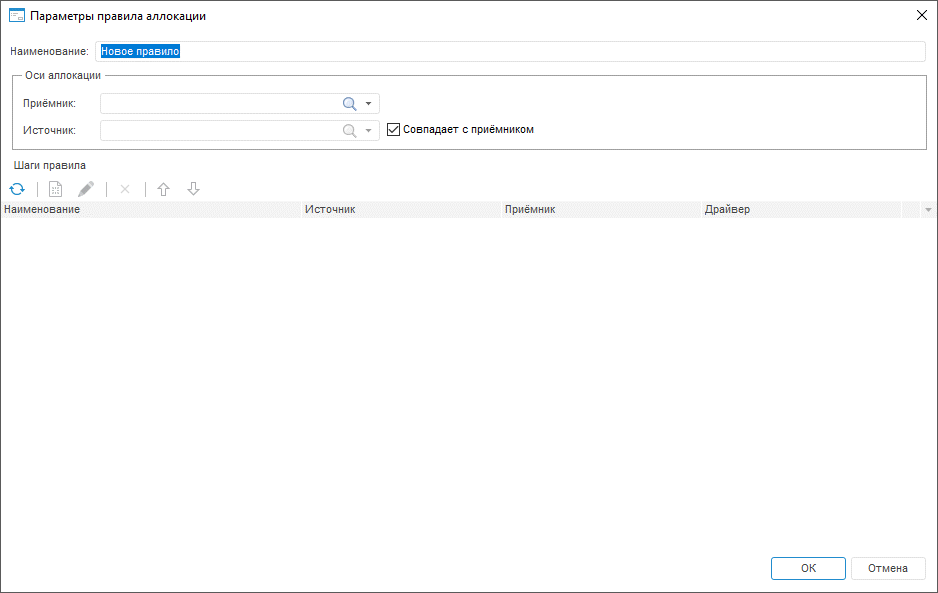 Создание нового правила или редактирование существующего правила выполняется в окне «Параметры правила аллокации».