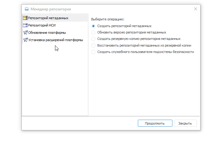 1. Используя настольное приложение «Форсайт. Аналитическая платформа», создайте репозиторий метаданных.