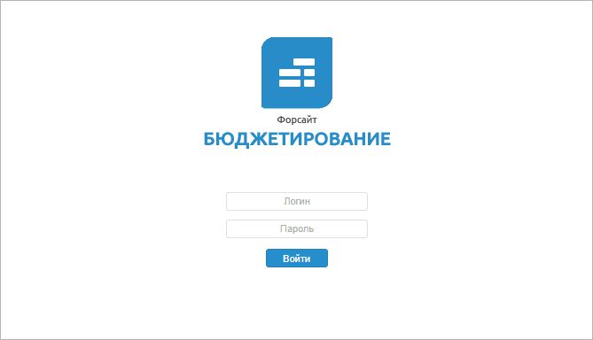 Для входа в веб-приложение «Форсайт. Бюджетирование» введите имя пользователя и пароль в соответствующие поля и нажмите на кнопку «Войти».
