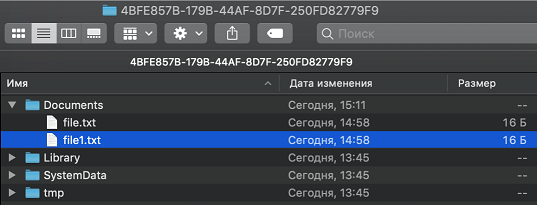 В папке Documents в директории мобильного приложения появится файл decriptedFile.txt: