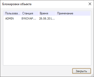 Для просмотра списка пользователей, которые заблокировали объект, выполните команду «Блокировки» в контекстном меню объекта. Будет открыто окно «Блокировки объекта»: