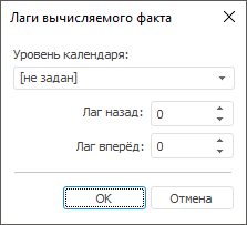 Лаг вперед. При задании данного параметра происходит увеличение отметки вперед по соответствующему уровню календаря для вычисляемого факта куба (по умолчанию «0»).