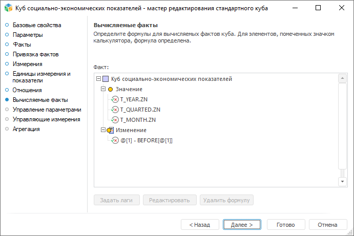 В некоторых случаях для корректного вычисления фактов куба необходимо задать лаги.