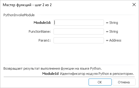 ModuleId. Идентификатор модуля с функцией Python в репозитории;