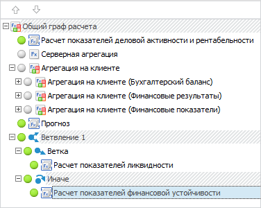 После добавления и настройки параметров алгоритма расчёта можно настроить условия выполнения алгоритма расчёта с помощью ветвлений. Ветвления используются для создания условий выполнения отдельных элементов алгоритма расчёта.
