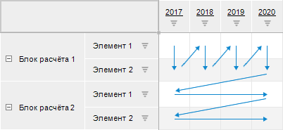 Примечание. Порядок расчёта блоков агрегации в дереве расчёта учитывается только при использовании поточечного расчёта конкретных формул расчёта. При использовании поточечного расчёта алгоритма порядок расчёта блоков агрегации зависит от выбранного способа расчёта.