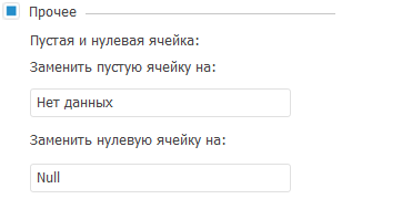 Введите текст, число или символы, которые будут отображены в пустых или нулевых ячейках в соответствующих полях: