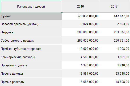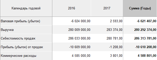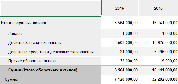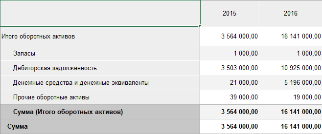 Пример итогов по строкам: