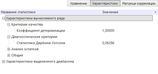В зависимости от диапазона выделенных данных панель может содержать различный набор вкладок. Переключение между вкладками выполняется с помощью соответствующих переключателей: