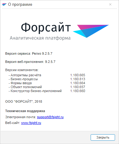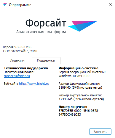 контактная информация службы технической поддержки ООО «ФОРСАЙТ»;
